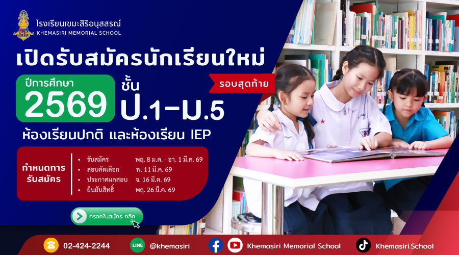 เข้าสู่หน้าเว็บไซต์โรงเรียนเขมะสิริอนุสสรณ์