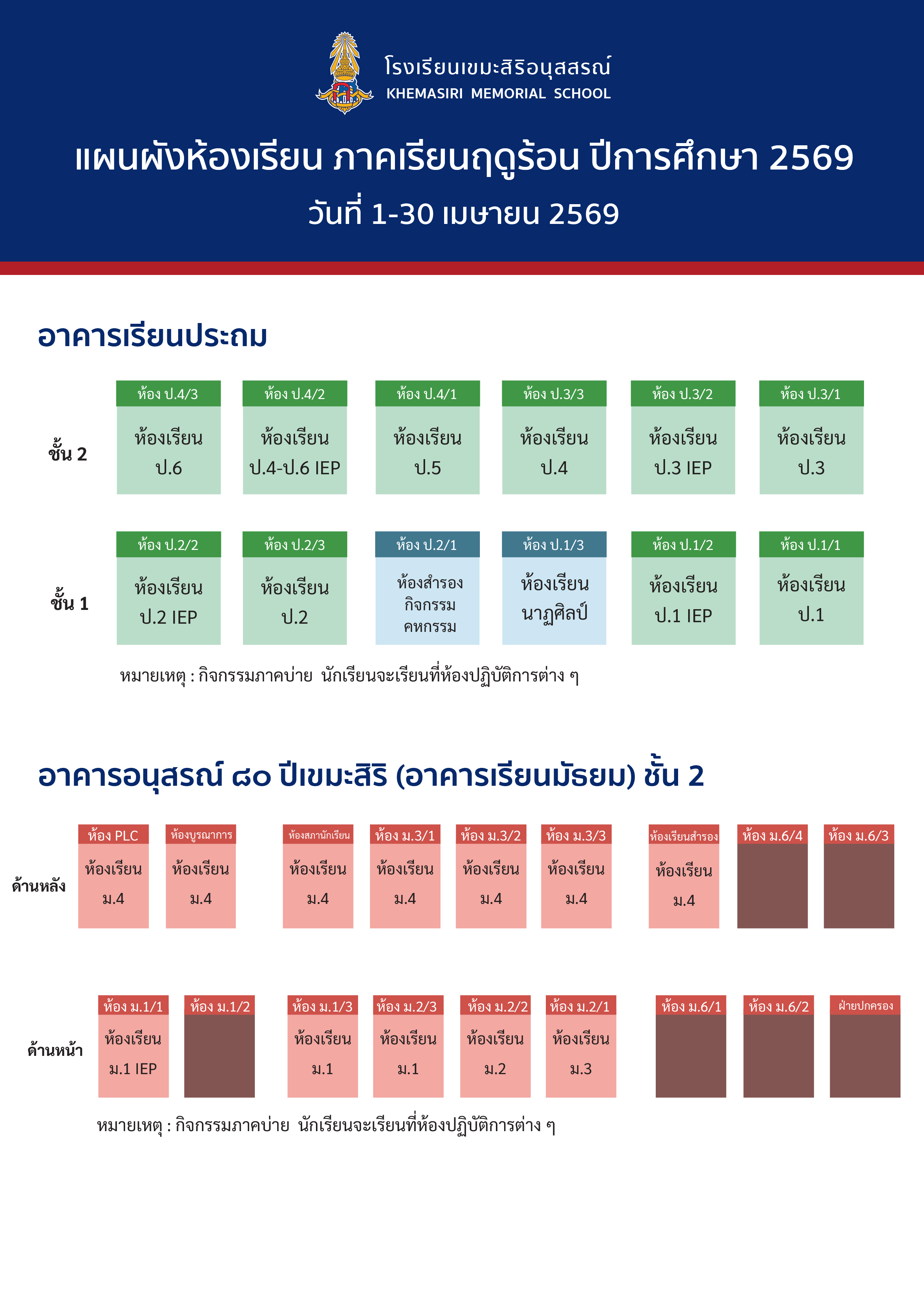 การรับ-ส่งนักเรียน และแผนผังห้องเรียน "ภาคเรียนฤดูร้อน" |